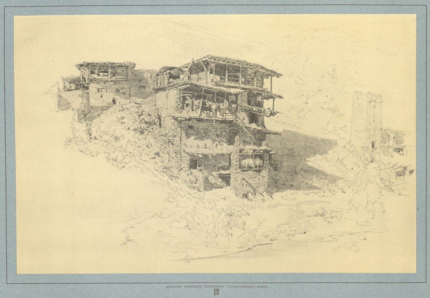 Горшельт Т. Кавказские походные рисунки [Вып. 1-6 в одном переплете]. - СПб., 1896. 17 горский аул